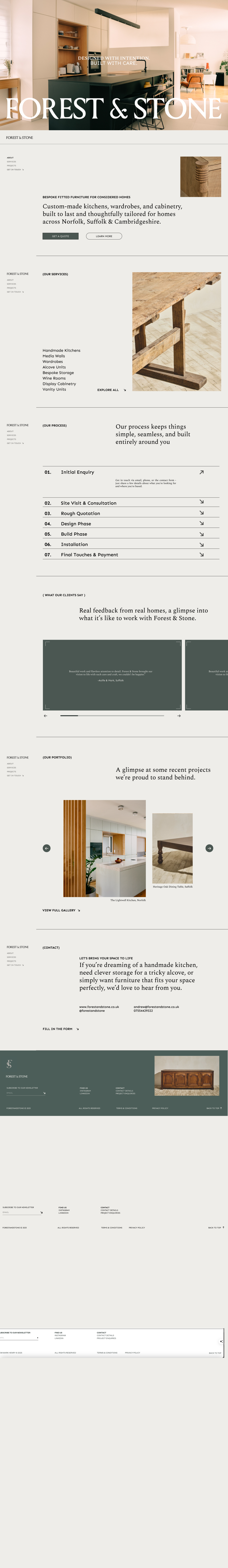 Beautiful work and flawless attention to detail. Forest & Stone brought our vision to life with such care and craft, we couldn’t be happier.” -Aoife & Mark, Suffolk